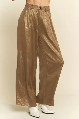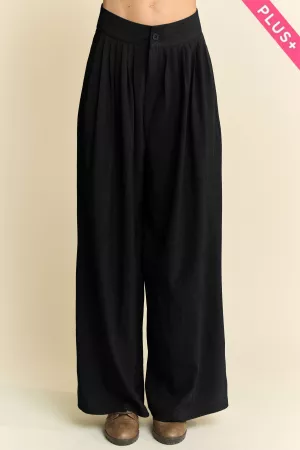 SOLID BACK POCKET SHIRRING DETAIL WIDE LEG PANTS
