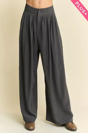 PLUS WASHED FRENCH CONTRAST WAIST BARREL PANTS