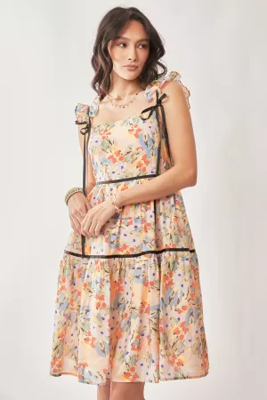 FLOWER PATTERN EMBROIDERY BODICE RAYON GAUZE DRESS