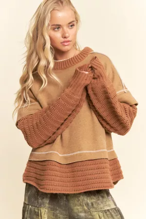 PLUS BOHO PATCHWORK KNIT TOP WITH FLOWER