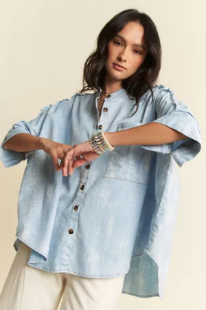 CHAMBRAY OVERSIZED WOVEN TOP