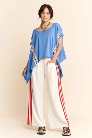 RELAXED FIT SHORT SLEEVE TOP PATCHWORK DESIGN