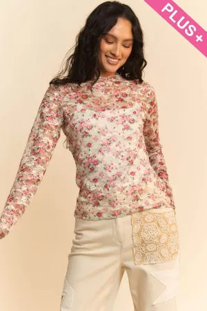 PLUS SHEER FLORAL EMBROIDERY ON SELF SWEATSHIRT