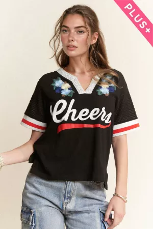PLUS RIBBON BOW LACE SHORT SLEEVE MESH LACE TOP