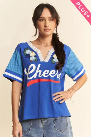 PLUS HEAVY WAFFLE KNIT LACE FLOWER SWEATSHIRT TOP