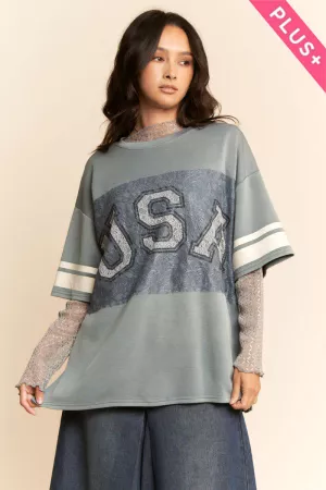 PLUS HOTFIX STUDDED SHORT SLEEVE LOOSE FIT TOP