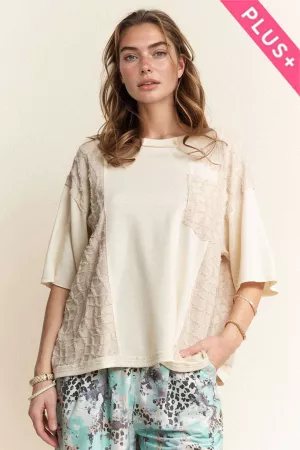 PLUS SWEATER MIX PATCHWORK TEXTURED RUFFLE TOP