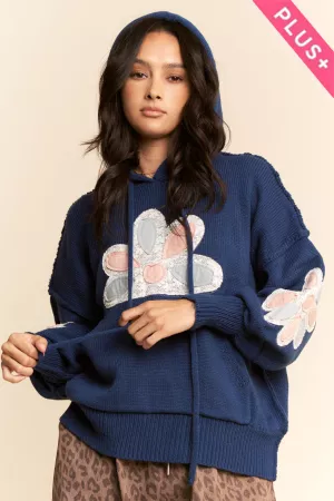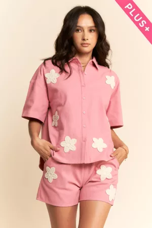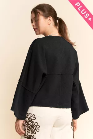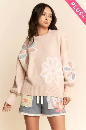 PLUS OPEN KNIT CROCHET BUTTON FRONT SWEATER