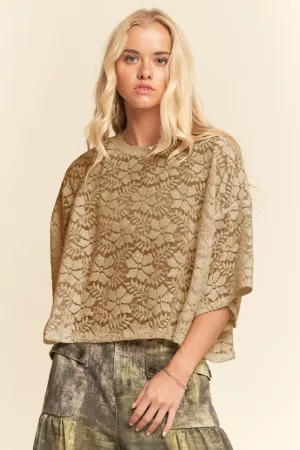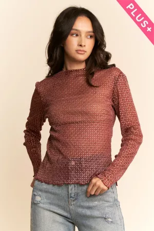 PLUS RUFFLE LACE SHORT SLEEVE MESH TOP