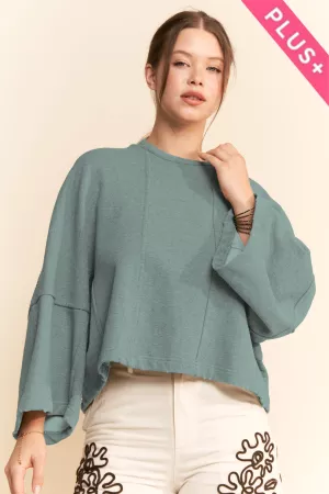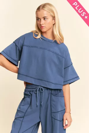 PLUS MINERAL WASHED TOP ELASIC BARREL PANTS SET