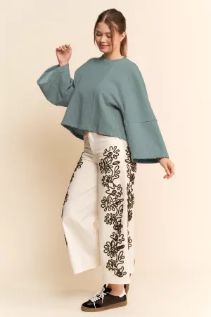 PLUS DAISY POCKET WIDE OPENING DENIM PANTS JEANS