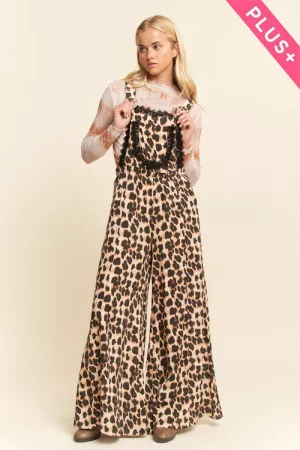 PLUS LEOPARD PRINT FRONT SLIT WIDE LEG JEANS
