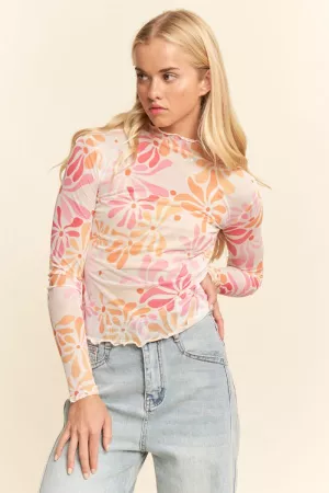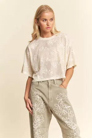 RUFFLE LACE SHORT SLEEVE MESH TOP