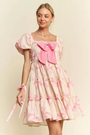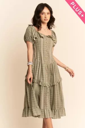 PLUS BUTTON FRONT SHORT BALLOON SLEEVE BACK DRESS