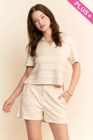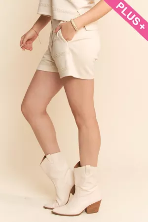 PLUS LACE TRIM DETAIL BUTTON BUCKLE SHORT PANTS