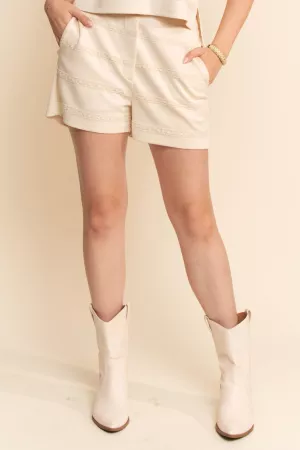 LACE TRIM DETAIL BUTTON BUCKLE SHORT PANTS