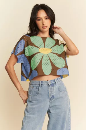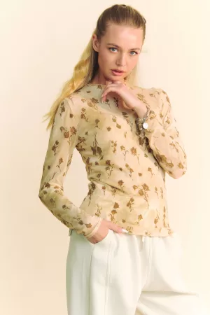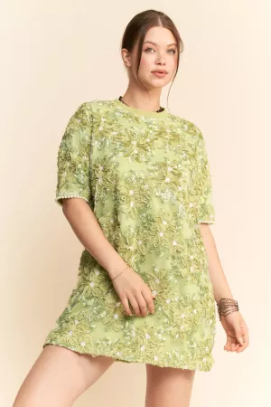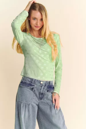 RIBBON EMBROIDERED SHORT SLEEVE MESH TOP
