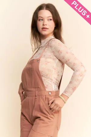 PLUS WASHED DENIM WIDE LEG OVERALL JUMPSUIT