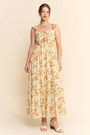 FLORAL EMBROIDERED SLEEVELESS MAXI SLIP DRESS