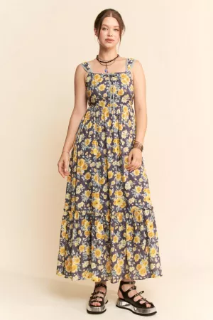 PLUS FLORAL PRINT WOVEN MAXI DRESS