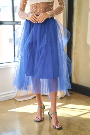 A-LINE FAIRY RUFFLE DETAIL ELASTIC WAISTBAND TULLE MIDI SKIRT MATCHING TOP DWT12195 Model is wearing Small Height: 5'8" Bust : 32B Waist : 23” Hips : 34”