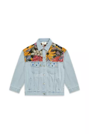 BOHO PAISLEY DENIM HEAVY WAFFLE KNIT MIXED LACE BLOCKED ZIPPER FRONT JACKET Model is wearing Small Height: 5'10" Bust : 34 Waist : 25” Hips : 35”