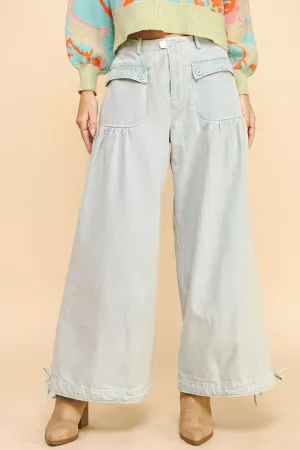 FLAP POCKET SIDE MID RISE STRAIGHT LEG LOOSE FIT WIDE CARGO PANTS 50%RAYON45%POLYESTER5%SPANDEX Model is wearing Small Height: 5'9" Bust : 32B Waist : 24" Hips : 34"