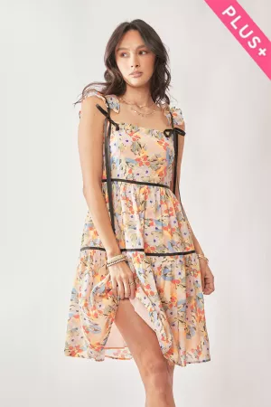 FLORAL PRINTED SHORT SLEEVE RUFFLE MINI DRESS Model is wearing Small Height: 5'9" Bust: 32B Waist: 24" Hips: 34"