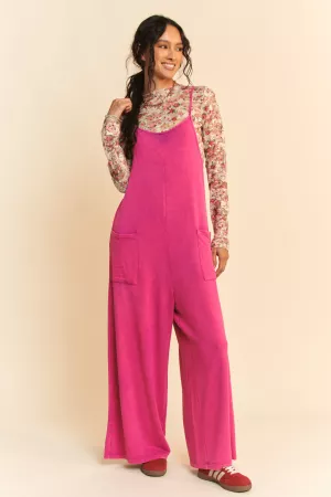 LEOPARD PRINTED NFRENCH TERRY TUBE STYLE SLIGHTLY OPEN BANDEAUX BACK WIDE LEG OPENING JUMPSUIT WITH ADJUSTABLE SHOULDER STRAPS Model is wearing Small Height: 5'10" Bust : 34 Waist : 25” Hips : 35”