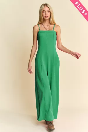 PLUS SOLID BOAT NECK SLEEVELESS BODICE JUMPSUIT WITH POCKETS 50%RAYON 45%POLYESTER 5%SPANDEX Model is wearing 1X Height: 5'10" Bust : 42C Waist : 38" HIps 45"