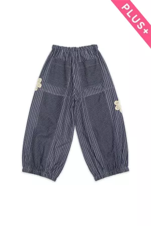 PLUS ELASTIC RUFLLED SOLID CASUAL LONG FULL PANT 95%polyester 5%spandex Model is wearing 1X Height: 5'10" Bust : 42C Waist : 38" HIps 45"