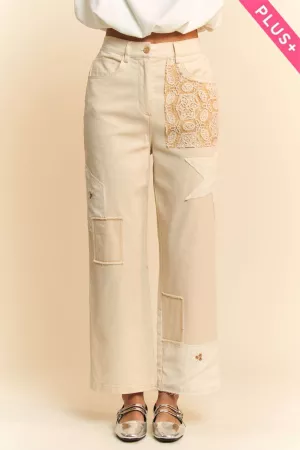 PLUS KNIT ELASTIC WAISTBAND WIDE LEG RELAXED LONG PANTS MATCHING TOP PWT32148T, PT30204 S:100%POLYESTER L:100%NYLON Model is wearing 1X Height: 5'10" Bust : 42C Waist : 38" Hips 45"