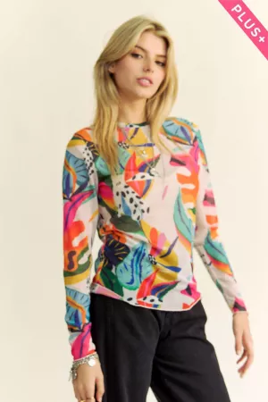 PLUS MULTI COLOR V NECK LONG SLEEVE SWEATER 60%POLYAMIDE 40%ACRYLIC MADE IN CHINA Model is wearing 1X Height: 5'10" Bust : 42C Waist : 38" HIps 45"