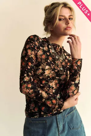 PLUS TEXTURED FLORAL PATTERN CREW NECK PULLOVER SWEATER TOP Model is wearing 1X Height: 5'10" Bust : 42C Waist : 38" HIps 45"