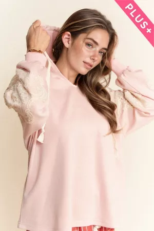PLUS RIBBON EMBROIDERED LONG-SLEEVE MESH TOP Model is wearing 1X Height: 5'10" Bust : 42C Waist : 38" HIps 45"