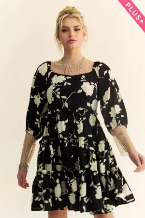 MULTI SMOCKED BODICE GEO CONTRAST DETAIL RUFFLE STRAPPY MIDI DRESS S:100%POLYESTER C1:100%POLYESTER C2:100%POLYESTER Model is wearing 1X Height: 5'10" Bust : 42C Waist : 38" Hips 45"