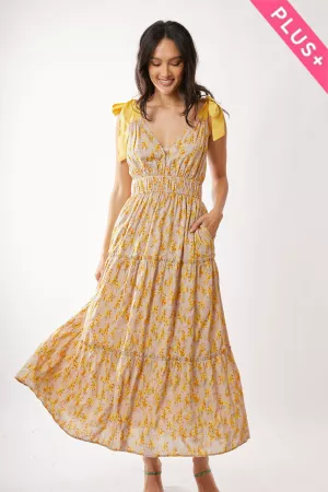 PLUS FLORAL PRINTED FLUTTER SHORT SLEEVE SMOCKING OPEN BACK DRESS 100%POLY Model is wearing 1X Height: 5'10" Bust : 42C Waist : 38" Hips 45"