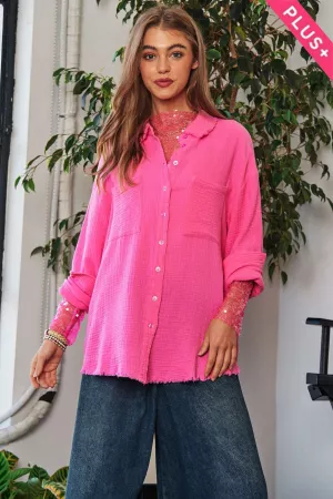 BUTTON DOWN LONG SLEEVE JACKET WITH POCKETS 95%POLYESTER 5%NYLON Model is wearing 1X Height: 5'10" Bust : 42C Waist : 38" HIps 45"