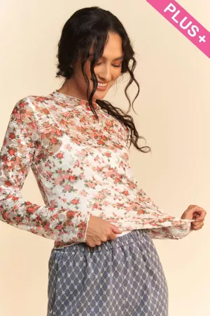 PLUS FLORAL PRINTED V NECK SHORT SLEEVE LOOSE FIT TOP Model is wearing 1X Height: 5'10" Bust : 42C Waist : 38" HIps 45"