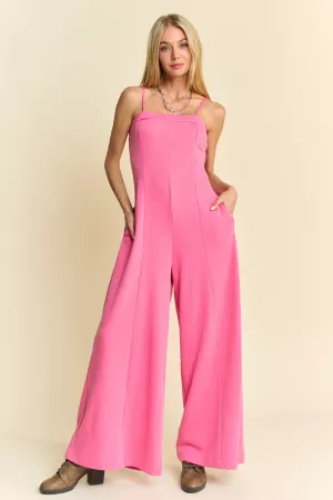 SOLID BOAT NECK SLEEVELESS BODICE JUMPSUIT WITH POCKETS Model is wearing Small Height: 5'8" Bust : 32B Waist : 23" Hips : 34"