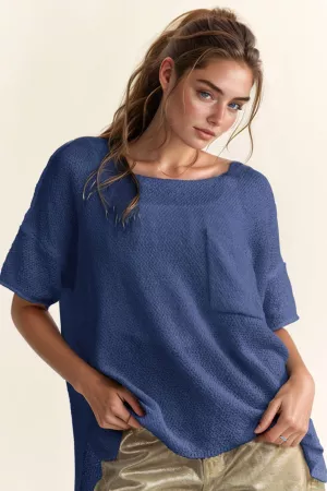 SOLID CREW NECK CROCHET BOTTOM DETAIL TEXTURED KNIT 3/4 SLEEVE LIGHT-WEIGHT SWEATER TOP 65%VISCOSE 35%NYLON Model is wearing Small Height: 5'8" Bust : 32B Waist : 23" Hips : 34"