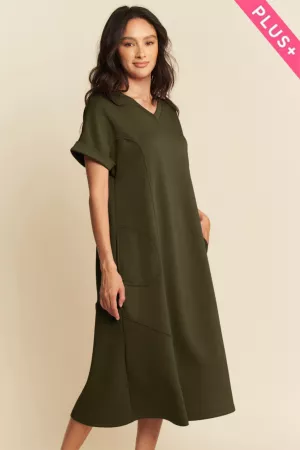 SOLID LONG SLEEVE ROUND NECK SWEATER DRESS 51% ACRYLIC, 49% WOOL Model is wearing 1X Height: 5'10" Bust : 42C Waist : 38" HIps 45"
