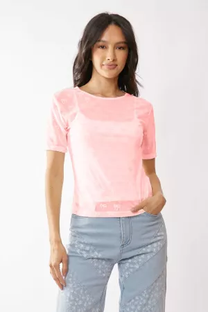 SPARKLING DIAMANTE DETAIL SHEER MESH MOCK NECK TOP Model is wearing Small Height: 5'8" Bust : 32B Waist : 23" Hips : 34"